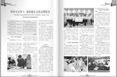 近日,湖北省紀(jì)委監(jiān)委主辦刊物《楚天風(fēng)紀(jì)》2023年第9期刊發(fā)了東湖高新集團(tuán)廉潔文化品牌建設(shè)經(jīng)驗交流文章《堅持全員參與 深化廉潔文化品牌建設(shè)》。