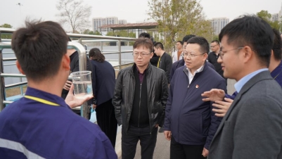 在陽邏項目負責人的講解下,全體人員先后參觀了陽邏污水處理廠二沉池、風光水多能互補尾水發(fā)電站一期示范點、出水口等關鍵部位,了解污水處理生產工藝、達標運營、安全管理及風險防控等情況。