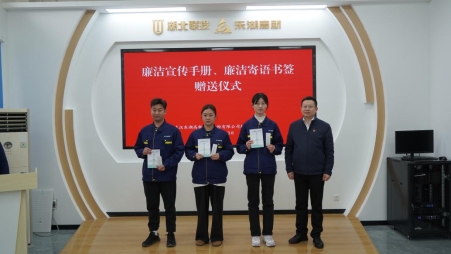 在廉潔教育示范基地“講廉堂”,集團紀律教育和廉潔文化宣講團團長、園區(qū)運營黨總支專職紀檢委員姜玉林為大家講授紀律教育宣講課,并為項目贈送廉潔主題書畫作品;宣講團成員、廉潔作品創(chuàng)作者代表熊珂分享其創(chuàng)作歷程及作品寓意;宣講團成員劉飛朗誦毛澤東詩詞《憶秦娥·婁山關》,并帶領大家重溫黨的革命歷史;由宣講團成員和特邀職工代表共同組成的合唱團,現場演繹職工自創(chuàng)廉潔主題歌曲《五彩廉謠》,倡導大家遵紀守法、廉潔自律?;顒幼詈螅瘓F紀委還為陽邏項目全體員工送上廉潔宣傳手冊和廉潔寄語書簽,讓廉潔文化深入基層一線?!傲蔽妒愕奈幕蟛?,正式拉開了集團2024年“清風萬里行”系列宣教活動的帷幕,邁出了積極落實湖北聯投紀委“紀法教育下基層”部署要求的先行步伐。